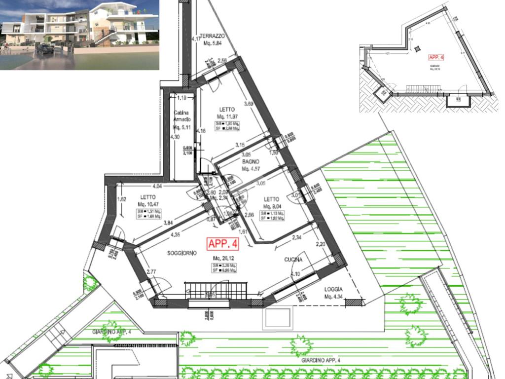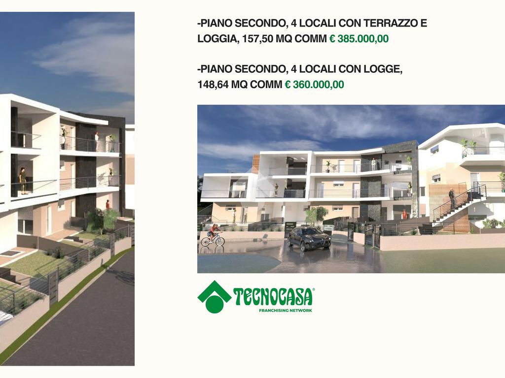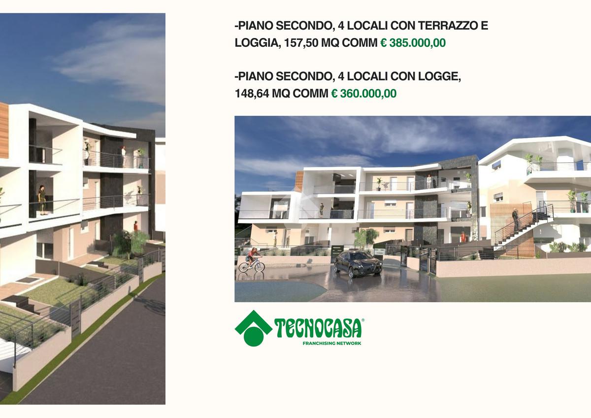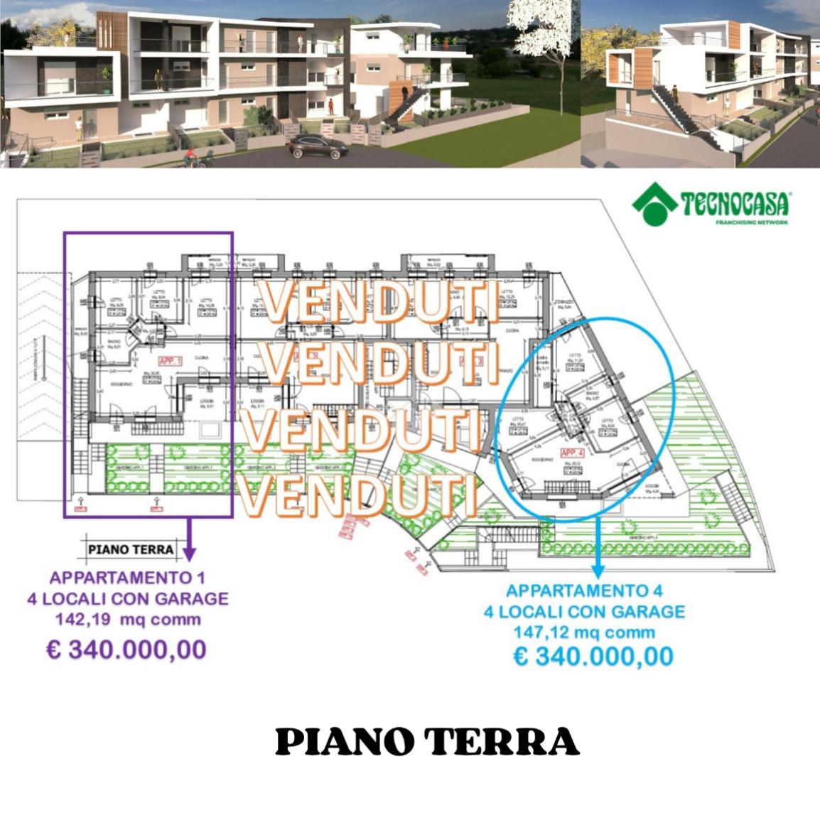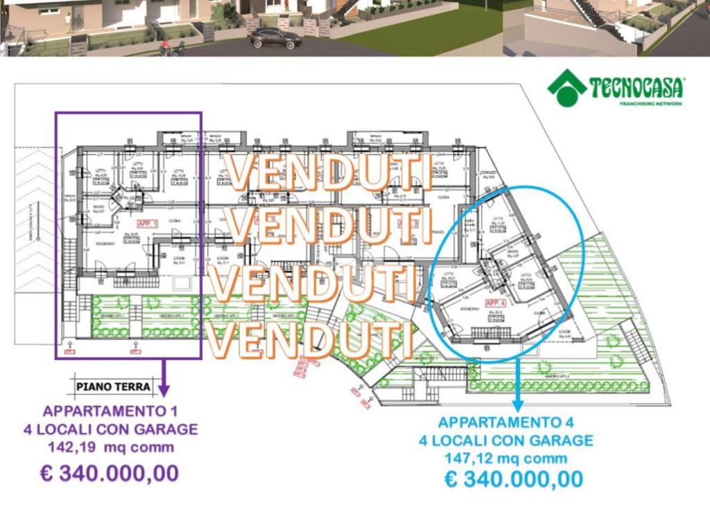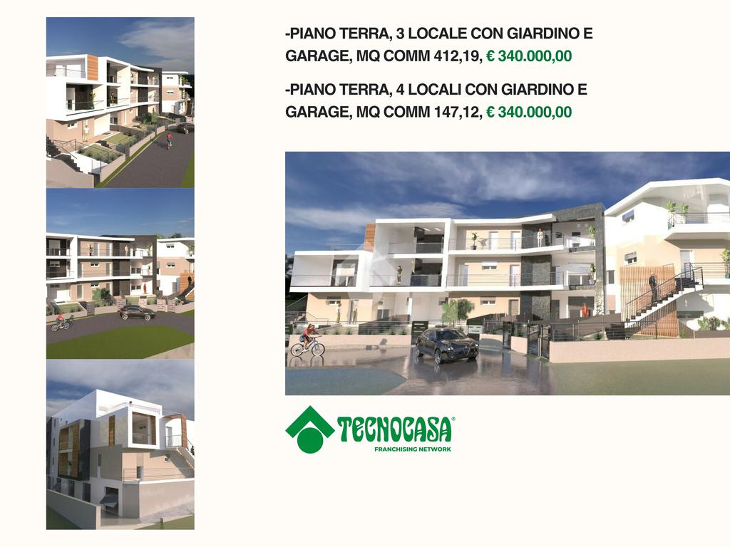 All’interno di questo contesto esclusivo, proponiamo due residenze di particolare prestigio situate al piano terra, entrambe posizionate alle estremità del complesso per garantire la massima privacy grazie ai tre lati liberi. Proposte a un valore di € 340.000,00, queste soluzioni rappresentano il top di gamma per metratura e pertinenze esterne. L'unità numero 1, con una superficie commerciale di 142,19 mq, si distingue per un ampio e luminoso soggiorno con cucina a vista, che si apre su una loggia e un giardino privato ideali per il relax all'aperto. La zona notte, servita da un disimpegno funzionale, comprende tre camere da letto e un terrazzo dedicato. Completa la proprietà un garage di generose dimensioni al piano seminterrato, con una superficie superiore ai 58 mq. L'unità numero 4 si sviluppa su una superficie commerciale di 147,12 mq, offrendo una distribuzione degli spazi votata alla modernità: un accogliente soggiorno con angolo cottura e una zona notte composta da due camerette e una suite matrimoniale completa di cabina armadio, dalla quale si accede direttamente a un terrazzo privato. La fusione tra il generoso giardino frontale e la loggia crea un ambiente living esteso, dove gli spazi esterni diventano il naturale prolungamento del comfort interno in un dialogo armonioso di luce e volumi. La proprietà dispone inoltre di un imponente garage di circa 62,5 mq al piano seminterrato.