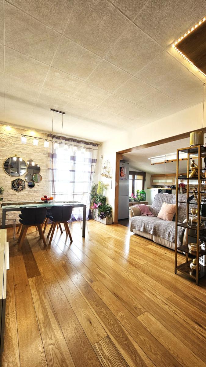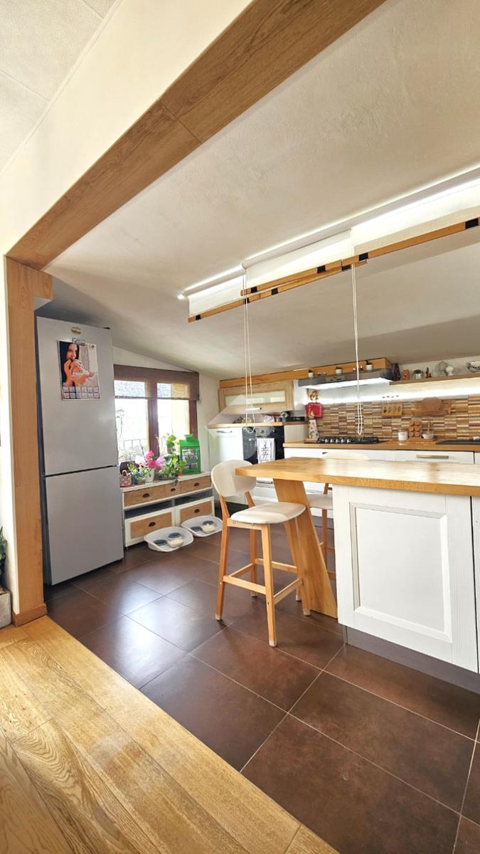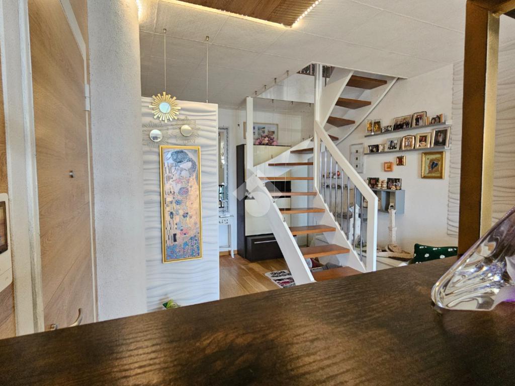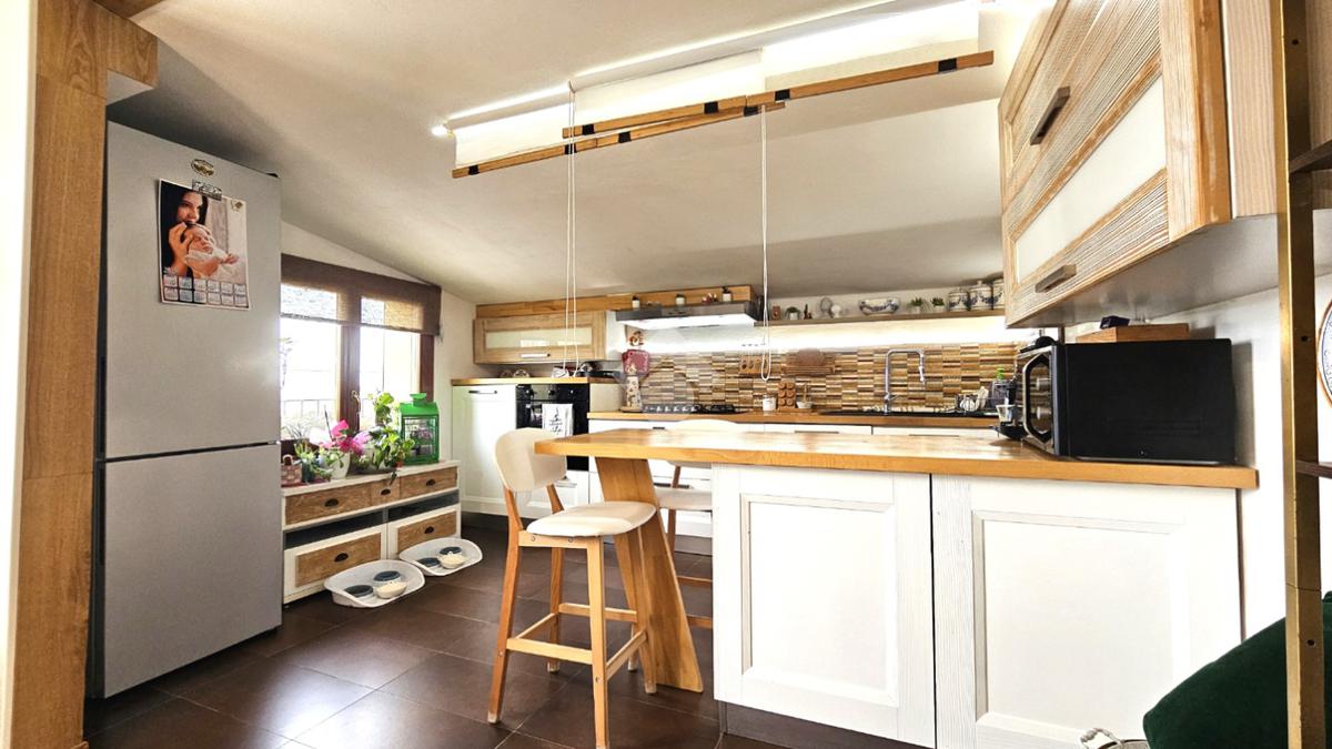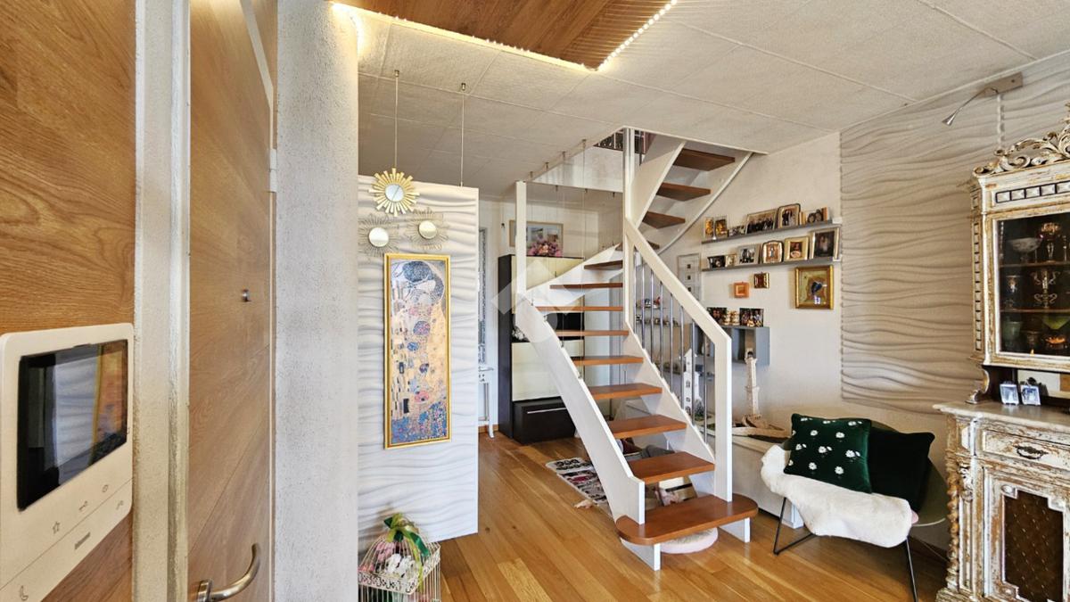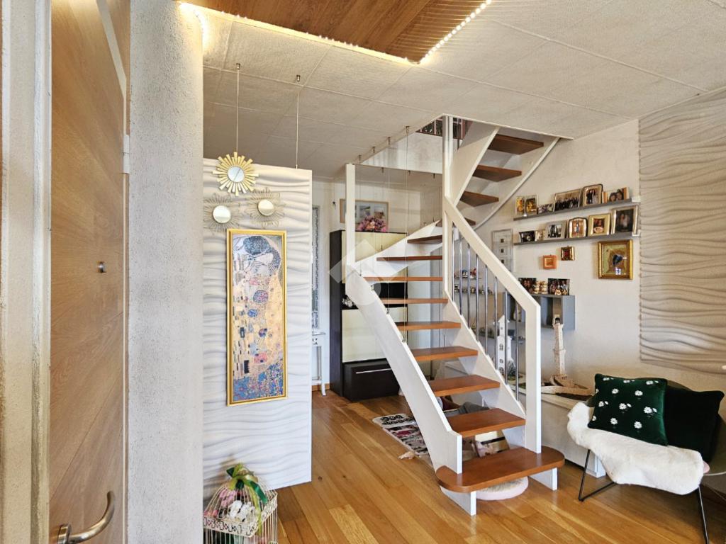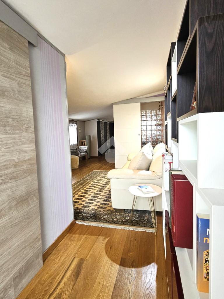 L’abitazione si sviluppa su 144 mq commerciali: al primo piano veniamo accolti da una luminosa zona living con cucina a vista, camera matrimoniale con cabina armadio/ripostiglio, bagno e due balconi. Una comoda scala interna di assoluto design architettonico conduce alla mansarda, un ambiente versatile e spazioso che ospita una seconda zona giorno, un’ulteriore camera matrimoniale, un bagno e due balconi.