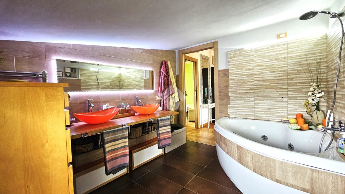 A completare questa straordinaria proprietà, al terra troviamo un ampio garage doppio, una rarità volumetrica pensata per la massima praticità. Lo spazio è arricchito da un funzionale terzo bagno di servizio, che rende l'area ideale anche come lavanderia tecnica o zona hobby indipendente.