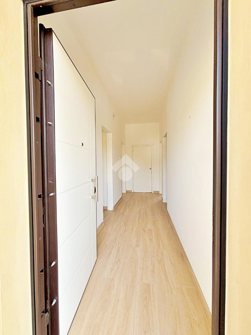 L'accesso principale avviene tramite un balcone che conduce a una zona giorno luminosa e ben organizzata, composta da un ampio soggiorno e una sala da pranzo con cucina.