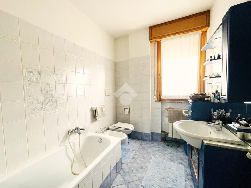 Segue poi la cucina abitabile, il disimpegno, un salottino (sfruttabile anche come quarta camera da letto) e un comodo bagno servito da vasca. Un Secondo balcone è accessibile dalla saletta e dalla cucina abitabile.